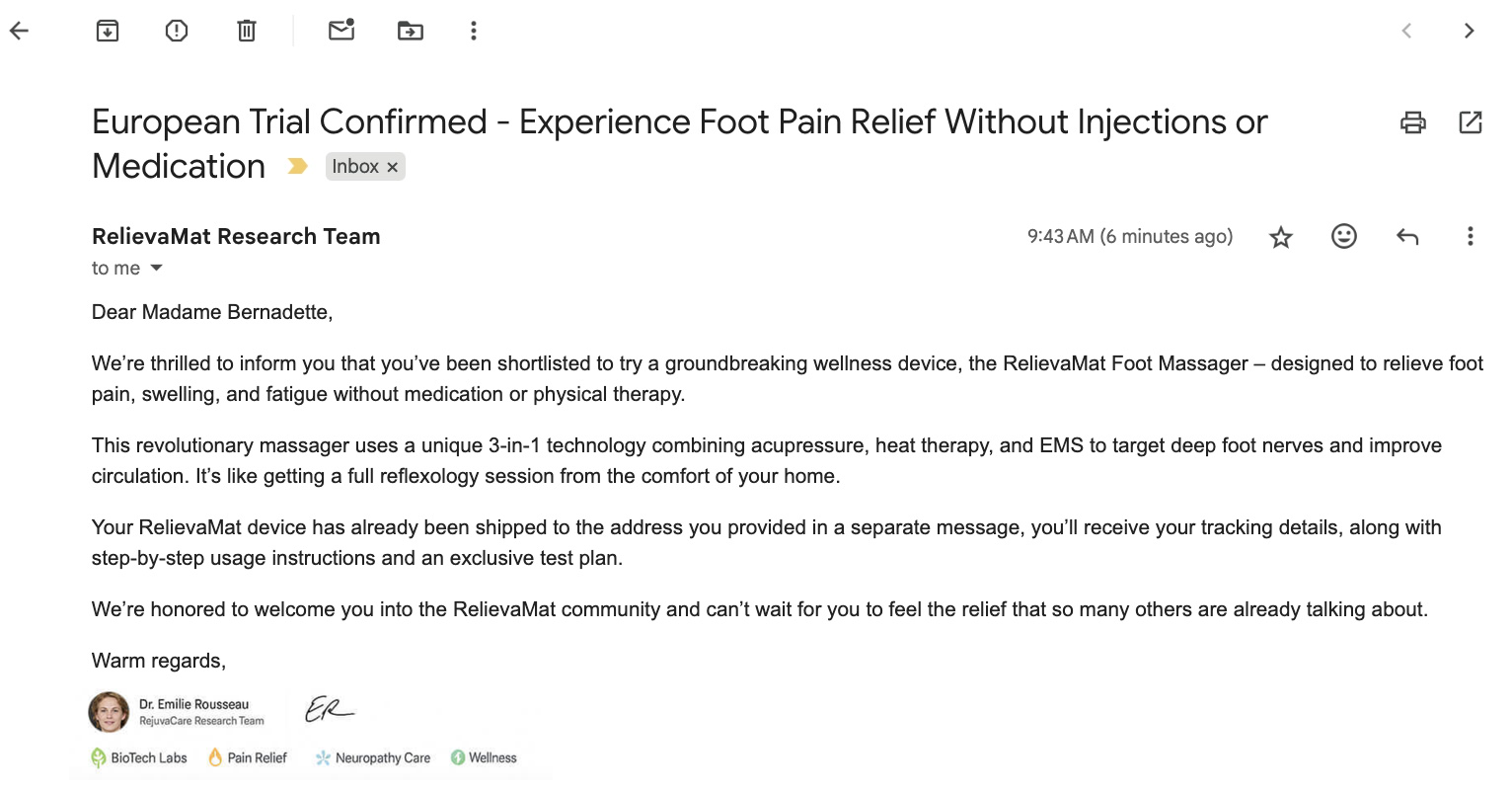 "That evening, I placed my feet on the RelievaMat device at 7 PM as instructed and activated the therapeutic treatment. The gentle stimulation and massage felt soothing, but I expected nothing more."