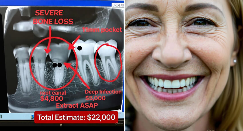 Sarah M. from Dallas knows exactly how you feel. She avoided the dentist for 7 years. When she finally went, they showed her an X-ray just like the one above. The diagnosis was devastating: severe bone loss, deep infections in multiple teeth, a root canal needed at $4,800, another deep infection requiring $5,000 in treatment, and they wanted to extract teeth ASAP. The total estimate: $22,000.