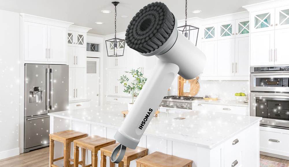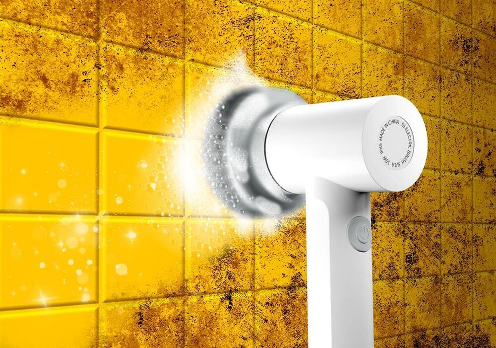 It’s called The Synoshi Power Spin Scrubber, a handheld cordless electric device that does most of your cleaning. It cleans everything from bathroom tiles to shower corners, stoves, car windows, and more.